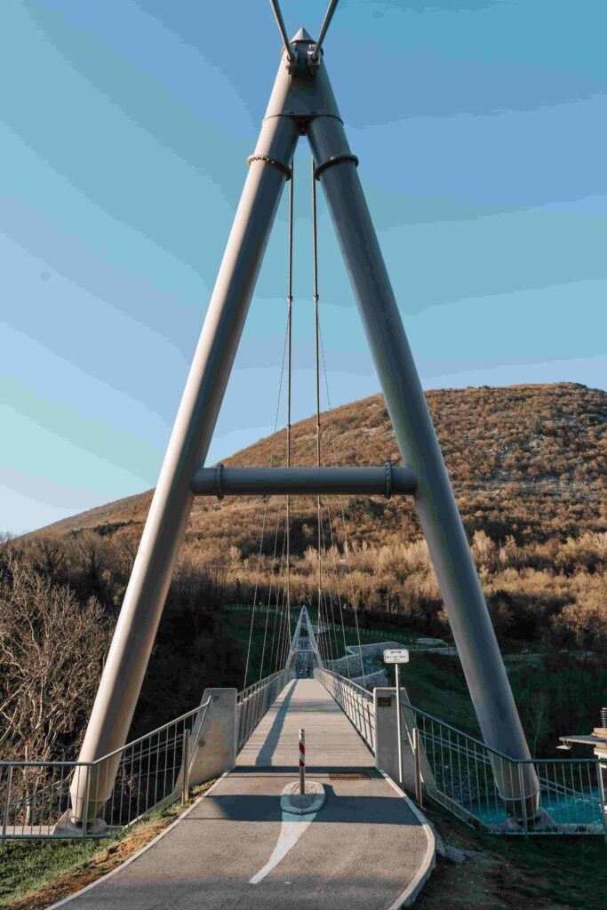 Gorizia, oggi è un simbolo di unità e cooperazione tra i due Paesi, i cui confini attuali sono segnati da una linea di mattonelle di pietra, trovandosi la parte italiana a Gorizia e la metà slovena a Nova Gorica. Un tempo il “Muro della Vergogna”, costruito nel 1947, divideva la città italiana da quella jugoslava; è stato poi rimosso con l’entrata della Slovenia nell’UE nel 2004. - Un ponte ciclabile tra due città: una nuova pista ciclabile unisce Gorizia (Italia) e Nova Gorica (Slovenia), tracciando un itinerario suggestivo lungo il fiume Isonzo. Cuore del percorso è il ponte ciclabile di Solkan, sospeso tra natura e storia, a pochi passi dalla storica stazione Transalpina. Immerso nel verde e affacciato su panorami mozzafiato, è il punto perfetto per vivere un’esperienza che intreccia sport, paesaggio e memoria di frontiera. Ideale per appassionati di cicloturismo di ogni livello.