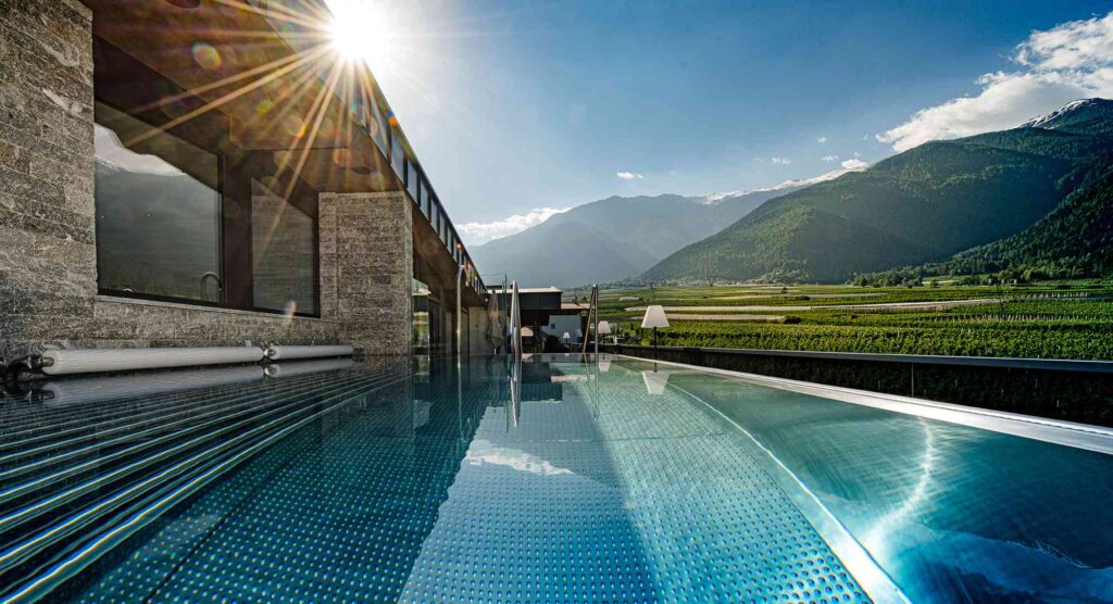 Poco distante, tra frutteti e boschi alpini, l’Alpiana Dolce Vita Mountain Resort & Spa, membro del Belvita Leading Wellnesshotels Südtirol, si distingue per il suo equilibrio tra design e natura. Linee essenziali, materiali naturali e luce diffusa creano un ambiente raffinato e rilassante, dove il benessere si sviluppa su più livelli: piscine indoor e outdoor, saune, zone relax e trattamenti beauty professionali. La Private Spa invita a vivere momenti più intimi, mentre trattamenti e massaggi professionali completano un’esperienza pensata per ritrovare armonia e leggerezza. Con sole 59 camere e suite, Alpiana interpreta il concetto di lusso discreto, perfetto per chi cerca una pausa autentica e rigenerante.